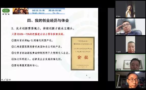 报告结束后,参会校友与刘宽胜共同探讨了创业问题,针对张连铠、景竑元、路忠跃等校友就自己在创业中遇到的困惑以及化工行业形势等问题,刘宽胜逐一解答。总时长1个半小时的线上分享会在互道晚安的温暖氛围中结束,与会人员纷纷表示刘宽胜校友的分享引导校友们投身重点科技行业,把握科技创新的大势,勇于追逐科技梦想,为大家创新创业之路带来了新的启示。